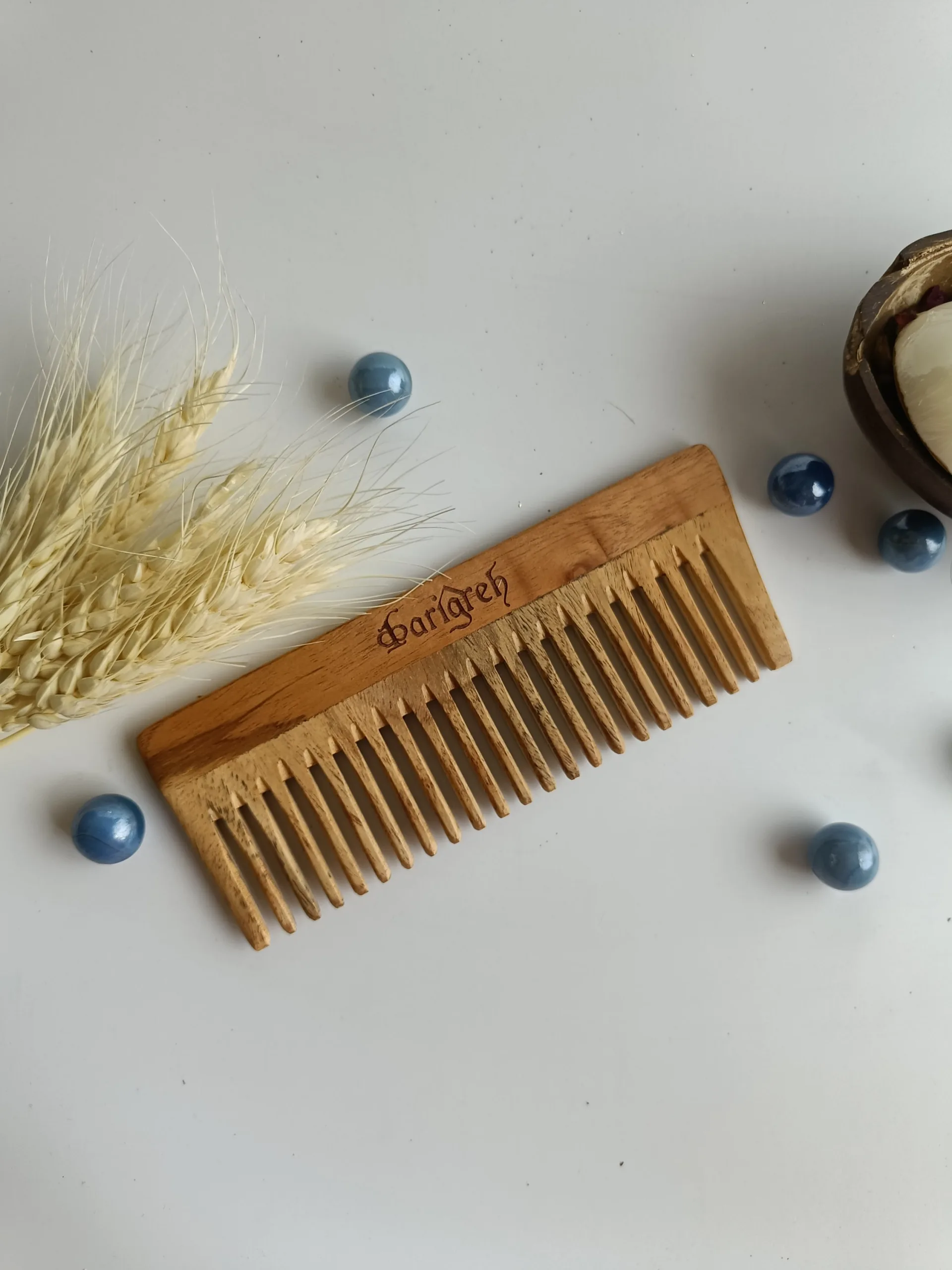 A sustainably made neem wood comb that gently detangles and promotes healthy hair. It’s kind to both hair and scalp, offering a natural way to care for her tresses.